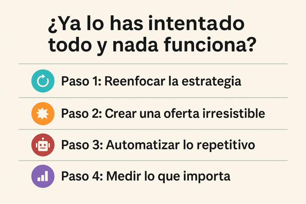 El problema es que la mayoría hace marketing sin sistema, sin foco y sin datos. Y eso siempre termina igual: frustración.